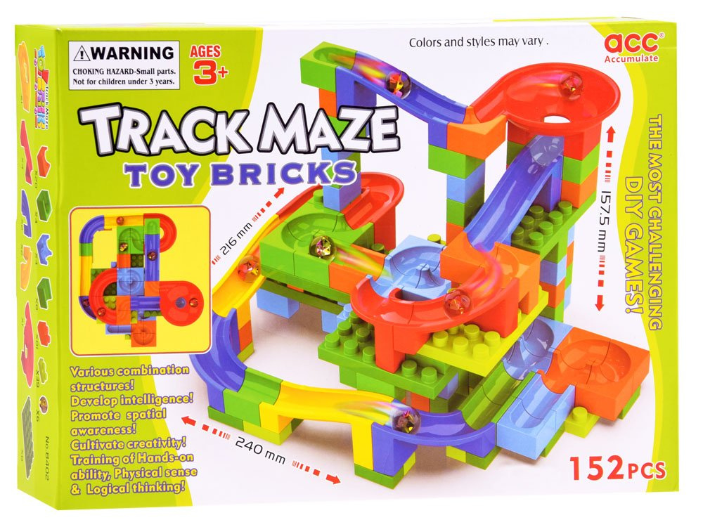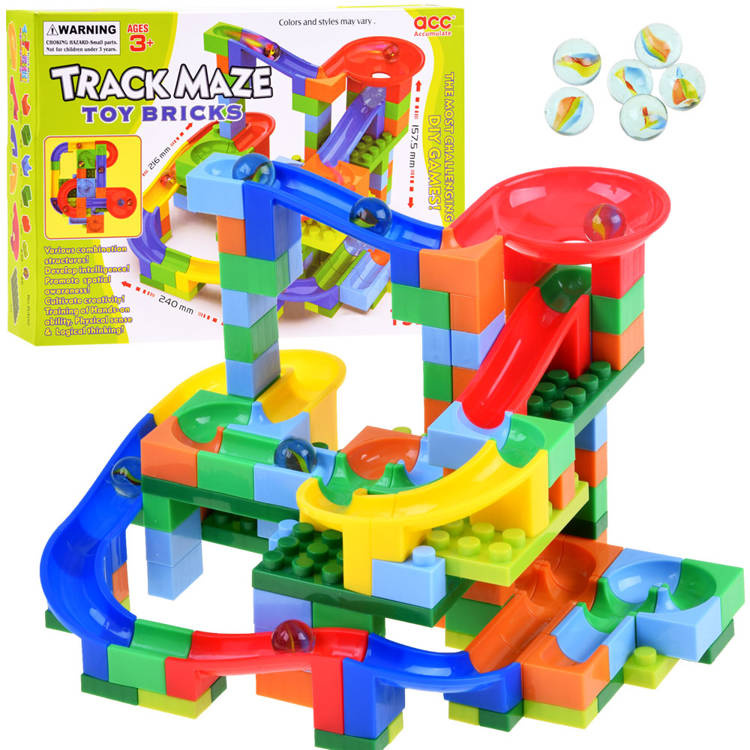 Traseul colorat, pe care bilele îl pot construi singure din cuburi, este o alegere pentru fiecare copil. Fișierul este compus din 152 de elemente.