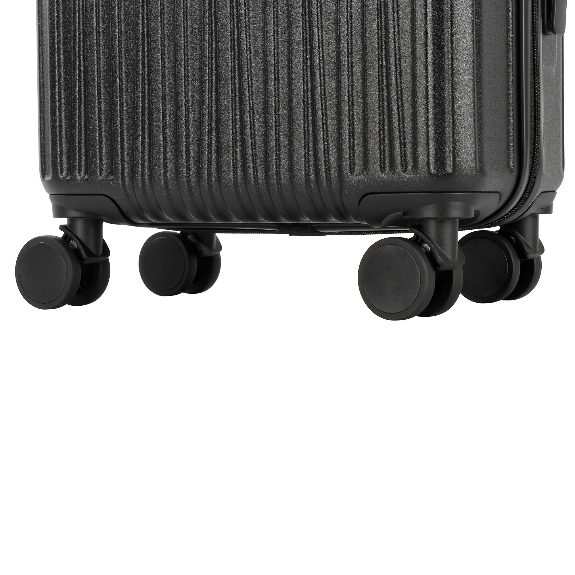 Fiecare valiză este echipată cu 4 roți pivotante și duble, care permit o manipulare ușoară și lină în toate direcțiile. Datorită acestor roți, puteți muta cu ușurință valizele chiar și în spații înguste, cum ar fi holurile aeroporturilor sau coridoarele hotelurilor. În plus, roțile duble asigură o stabilitate mai mare și rezistență la uzură.