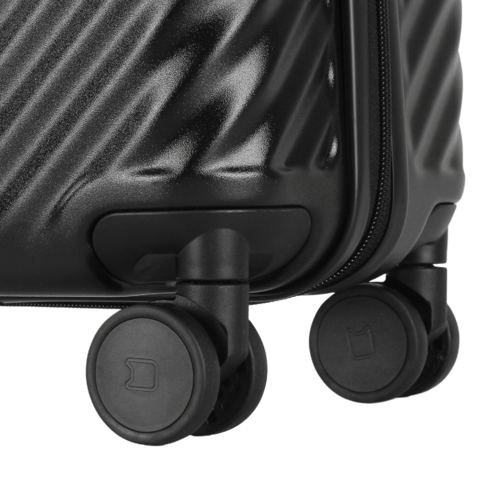 Fiecare valiză este echipată cu 4 roți pivotante și duble, care permit o manipulare ușoară și lină în toate direcțiile. Datorită acestor roți, puteți muta cu ușurință valizele chiar și în spații înguste, cum ar fi holurile aeroporturilor sau coridoarele hotelurilor. În plus, roțile duble asigură o stabilitate mai mare și rezistență la uzură.
