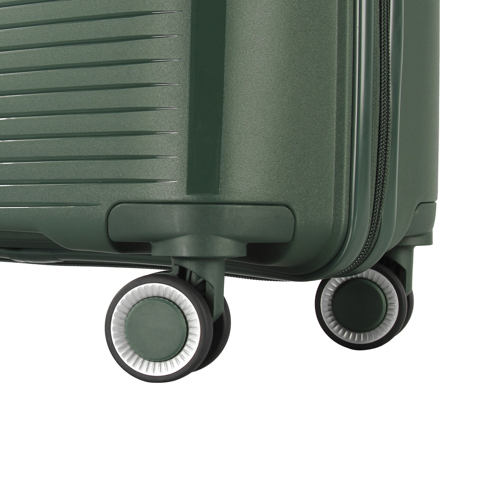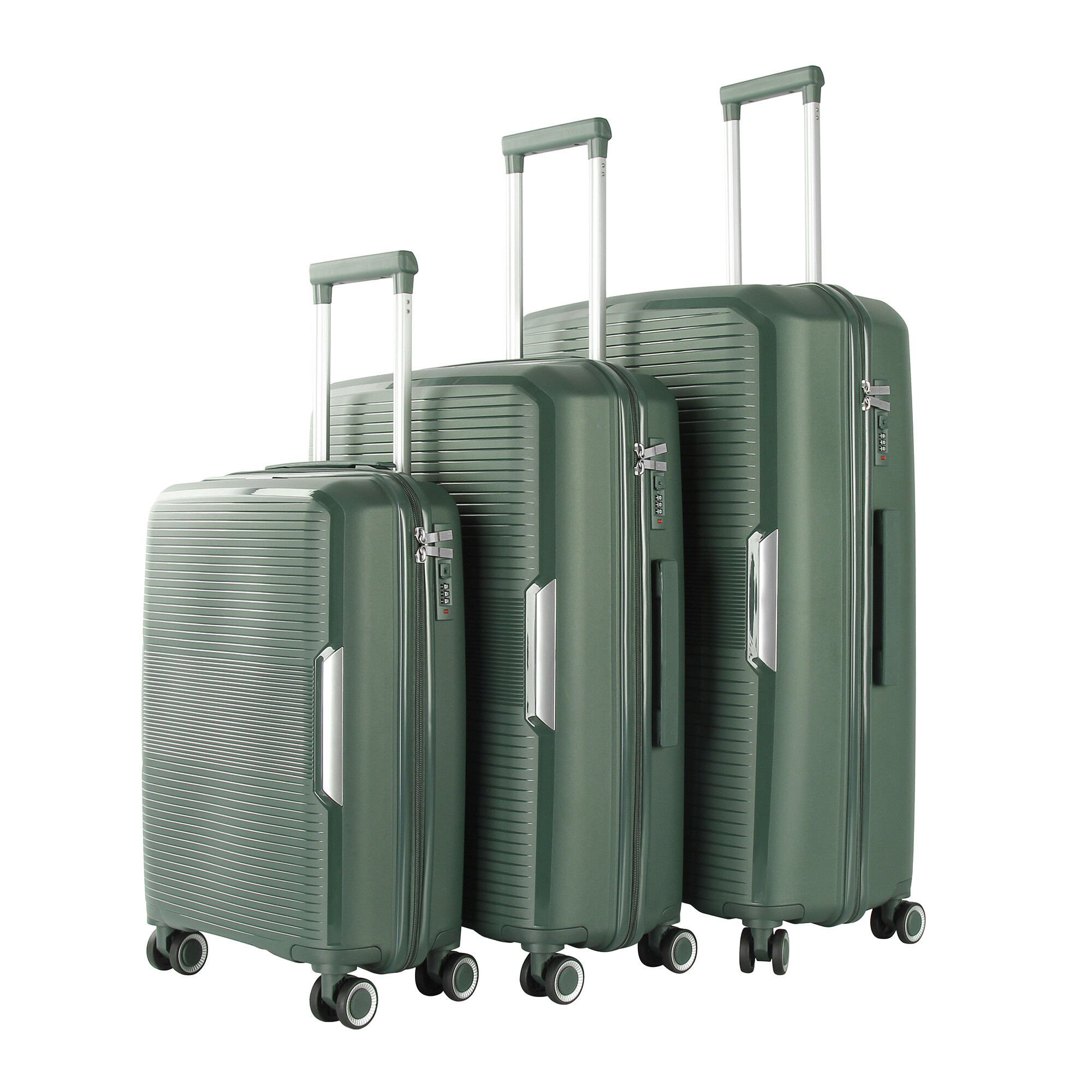 Fiecare valiză este echipată cu 4 roți pivotante și duble, care permit o manipulare ușoară și lină în toate direcțiile. Datorită acestor roți, puteți muta cu ușurință valizele chiar și în spații înguste, cum ar fi holurile aeroporturilor sau coridoarele hotelurilor. În plus, roțile duble asigură o stabilitate mai mare și rezistență la uzură.