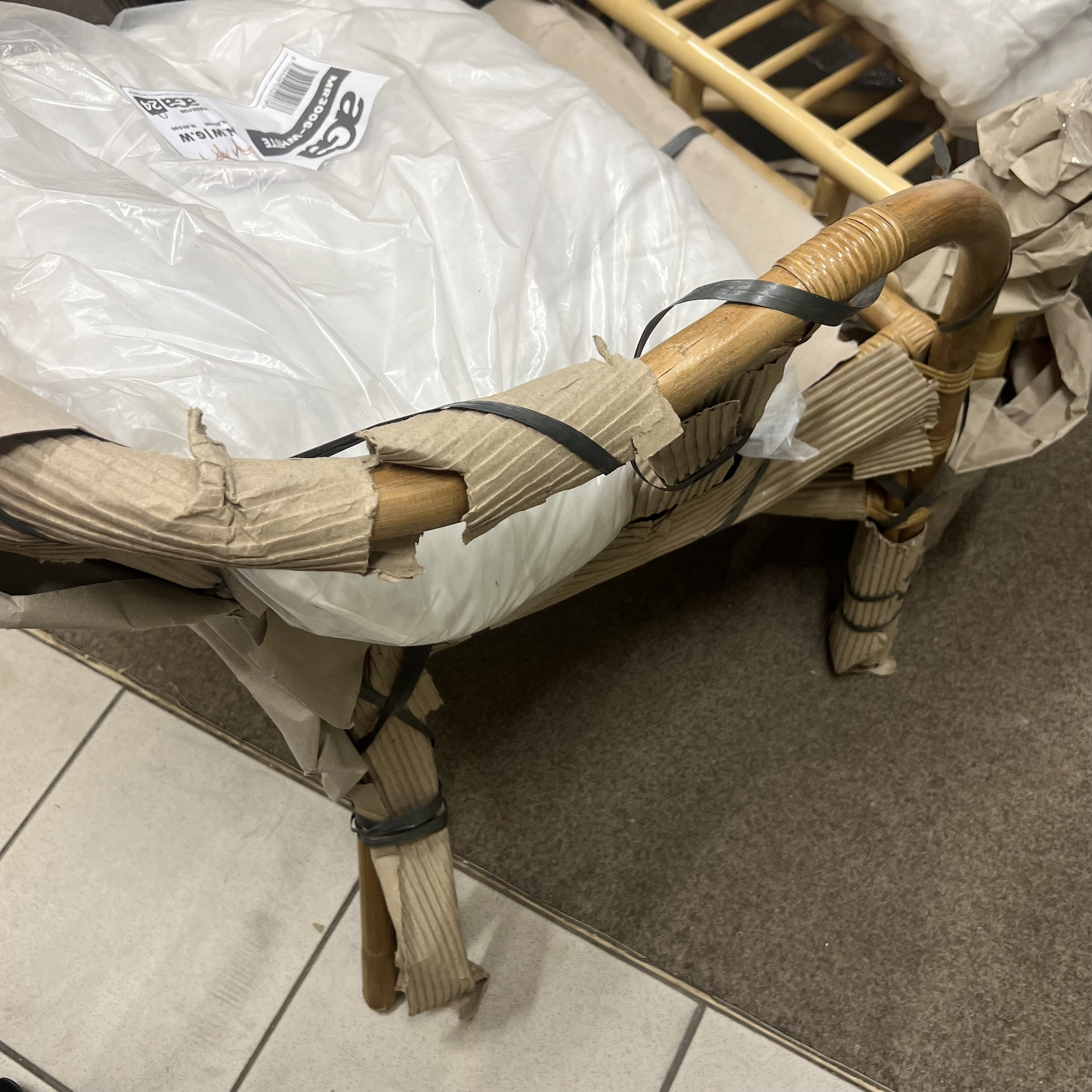Această canapea din ratan este complet utilizabilă, dar are o suprafață ușor zgâriată (vezi foto).