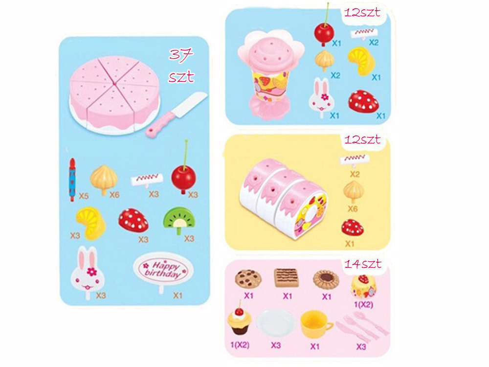 O parte esențială a fiecărei petreceri de aniversare de succes este tortul.Vă prezentăm setul cu care fiecare mică gazdă va putea organiza o petrecere de neuitat. Setul include un tort care poate fi decorat în diferite moduri, tăiat și servit oaspeților. Este inclusă și o altă gustare, de exemplu.. prăjituri, biscuiți etc.