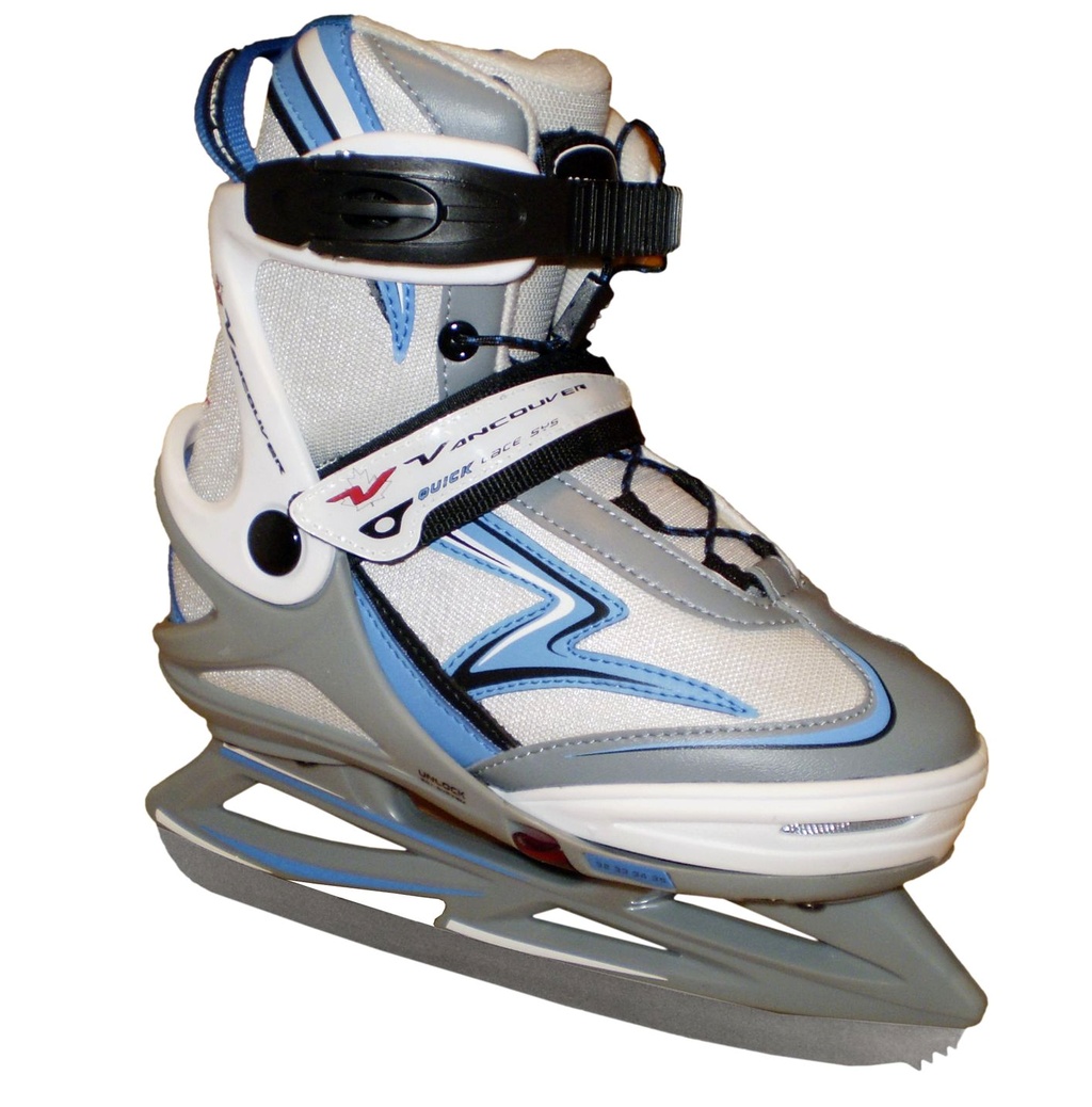 Gheata de patinaj cu formă anatomică (Quick Lock) se adaptează perfect la arcada și călcâiul piciorului.Două catarame asigură strângerea perfectă a pantofului.