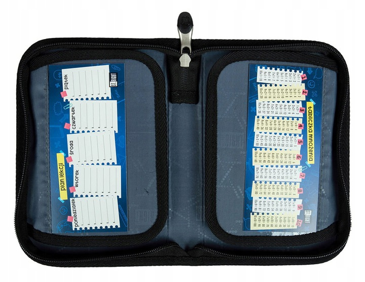 Pe clapetele interioare sunt folii transparente pentru orarul școlar, tabla înmulțirii mici etc.