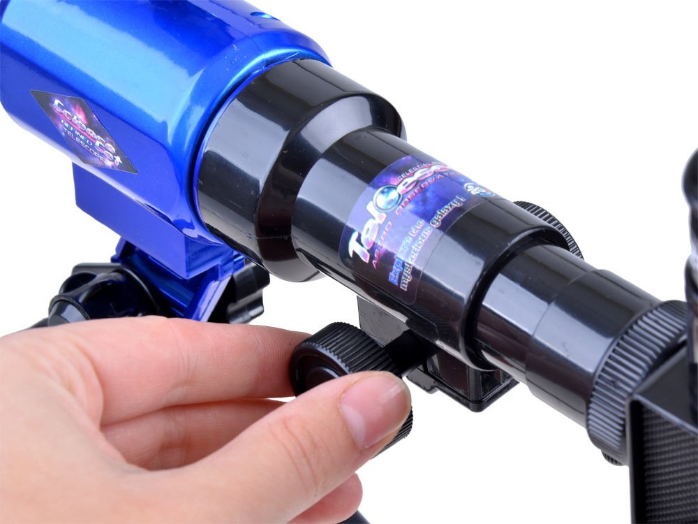 Telescopul este fabricat din plastic, trepied din aluminiu.