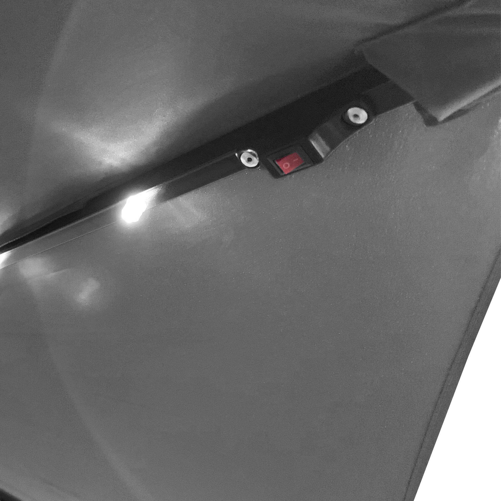 Umbrela de soare are 24 de LED-uri de-a lungul coastelor, care sunt alimentate de un panou solar amplasat pe umbrelă. Iluminatul LED va crea o atmosferă plăcută în grădina dumneavoastră în timpul serilor petrecute afară.