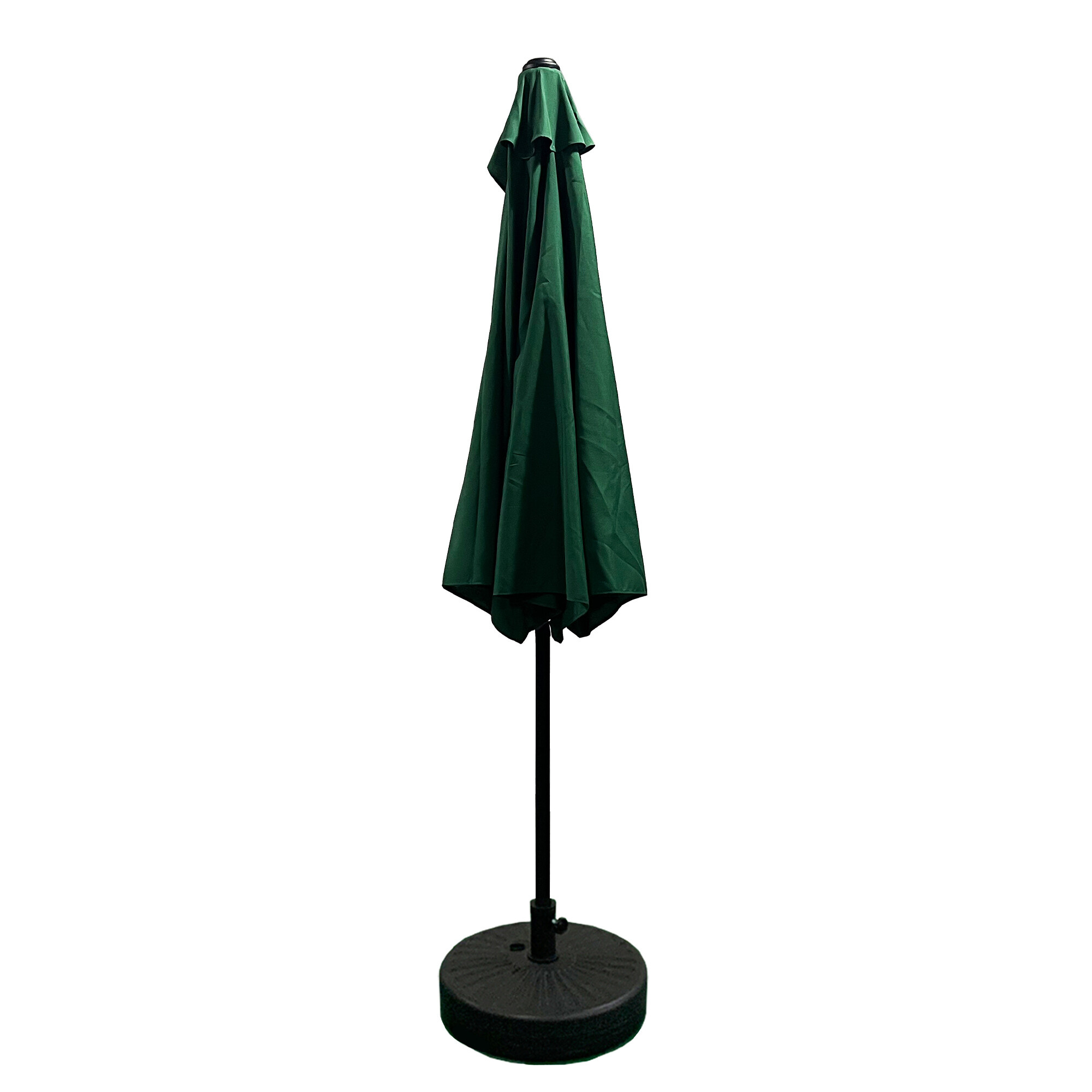 Umbrelă de grădină semicirculară cu structură solidă și acoperire de calitate, realizată din material de poliester rezistent.