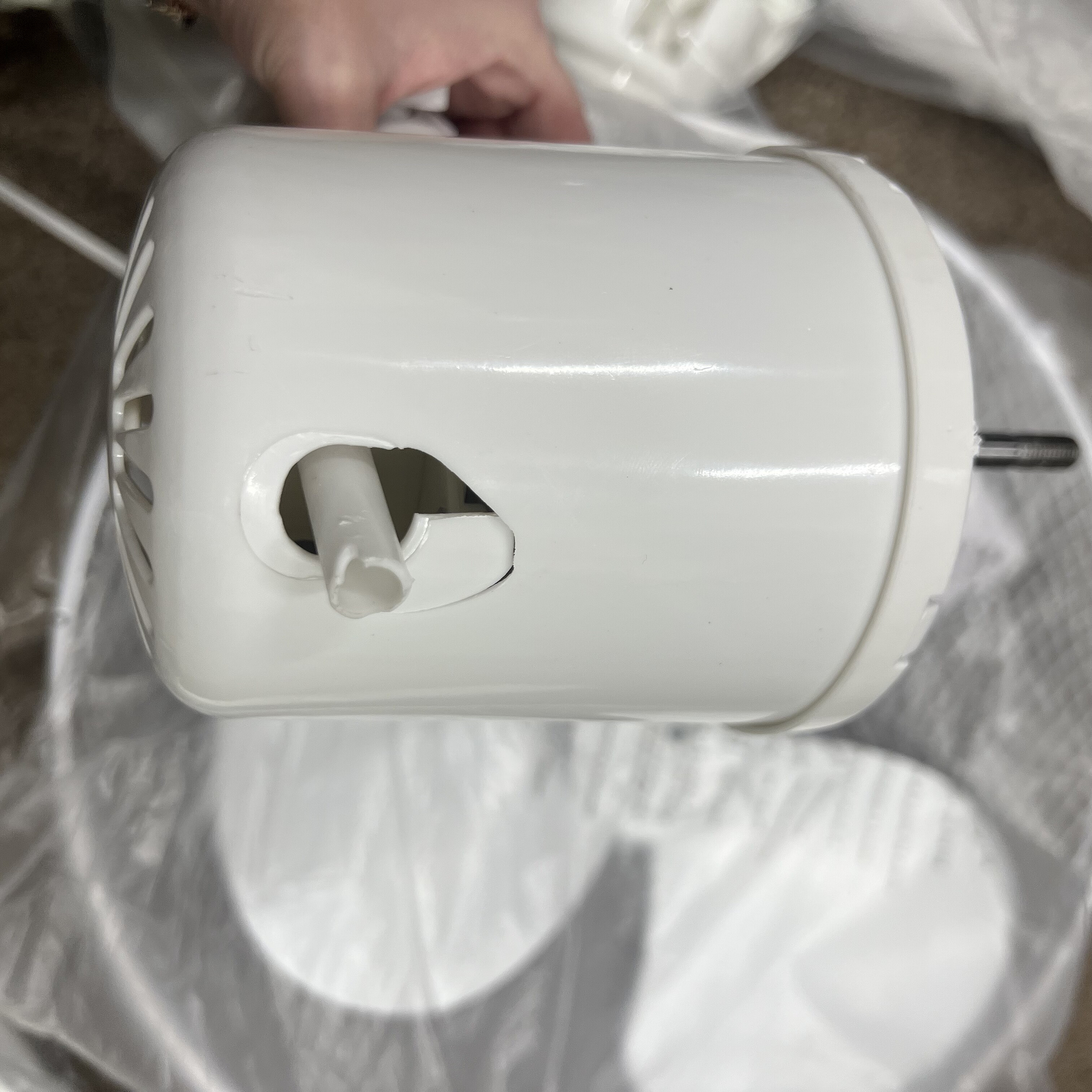 Ventilatorul prezintă deteriorări, dar este funcțional. În apropierea comutatorului de viteză se află o fisură.