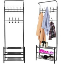 Cuier pentru haine cu trei rafturi pentru pantofi negru ISO 15744
